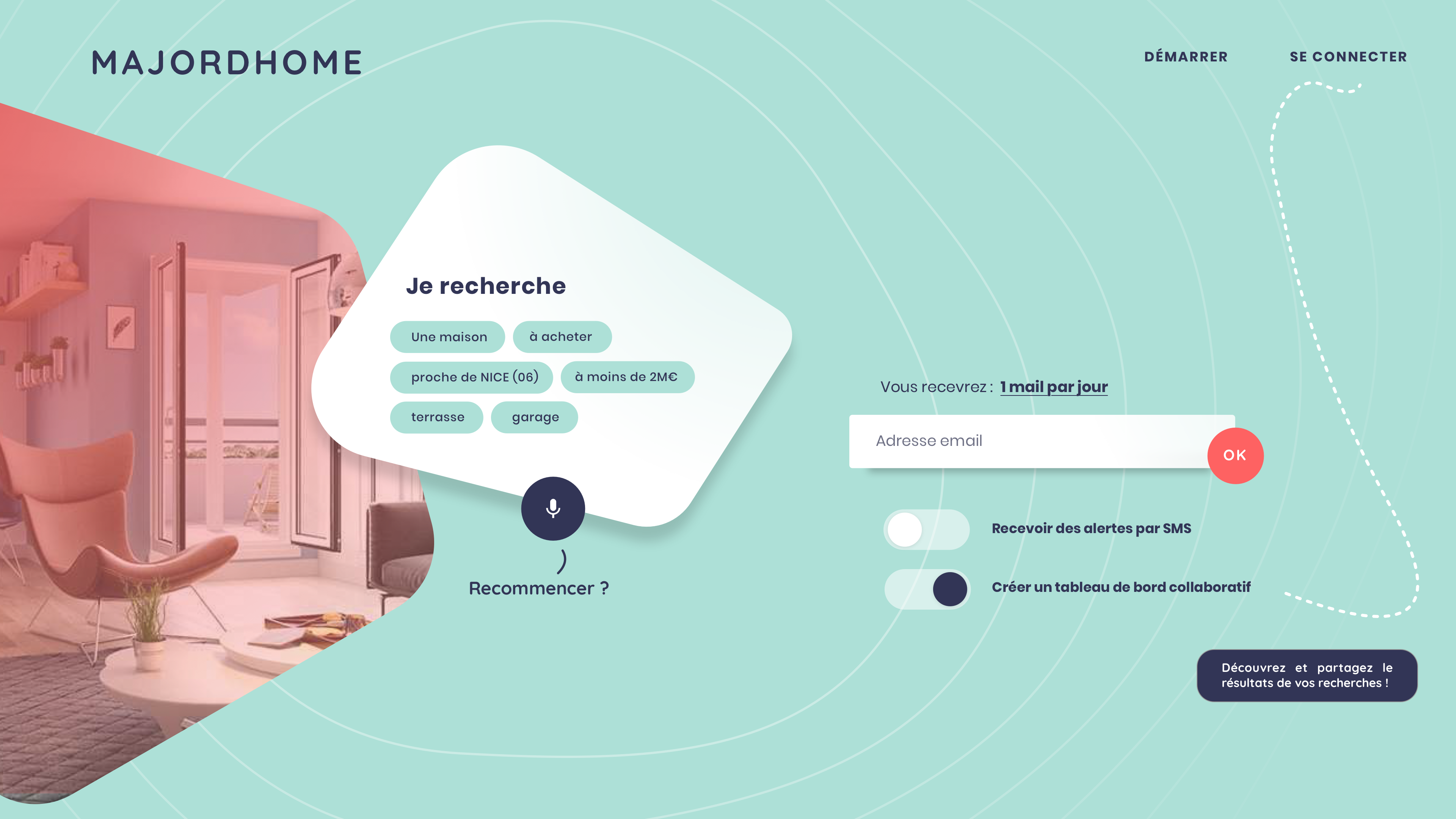 Majordhome Prototype of an alerting website and app to find a new home. #vocalsearch #realestate #design Date: 2019 Category: Branding Design Share: Previous Next